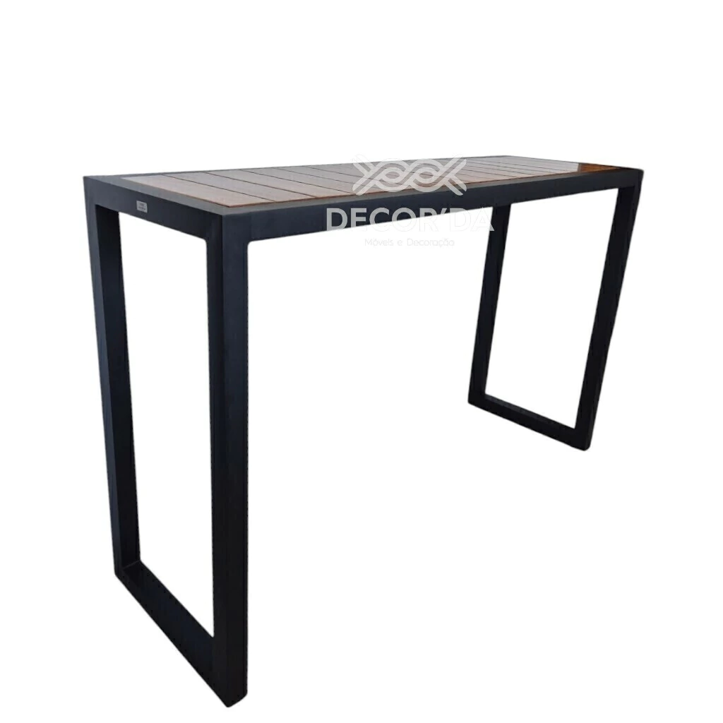 Tampo em Madeira Cumaru maciça: possui alta resistência, dureza natural, tonalidade quente e acabamento refinado. Estrutura em alumínio com pintura eletrostática: proporciona estabilidade, leveza e proteção contra corrosão
