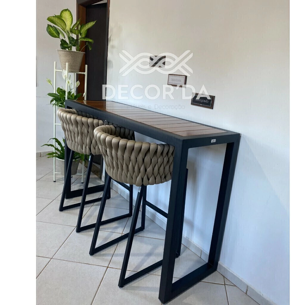 Personalize sua bancada escolhendo tamanho conforme espaço (várias opções de largura disponíveis) e acabamento da pintura/alumínio para combinar com sua decoração. Produzida sob demanda, destaca-se por ser uma peça única que alinha estética e robustez.