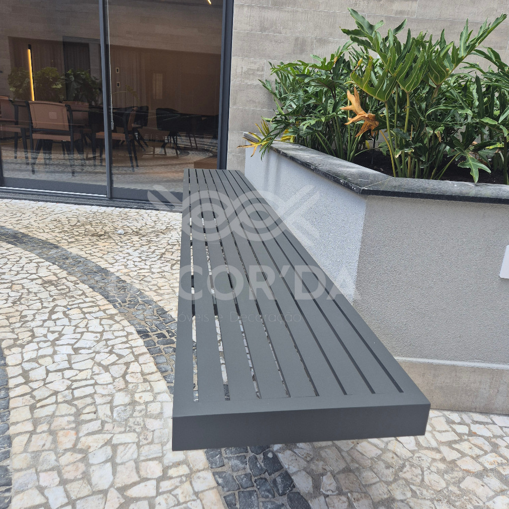 Adicione estilo contemporâneo ao seu espaço com o Banco Isis em Alumínio Ripado, peça premium que combina visual moderno e robustez para áreas externas.
