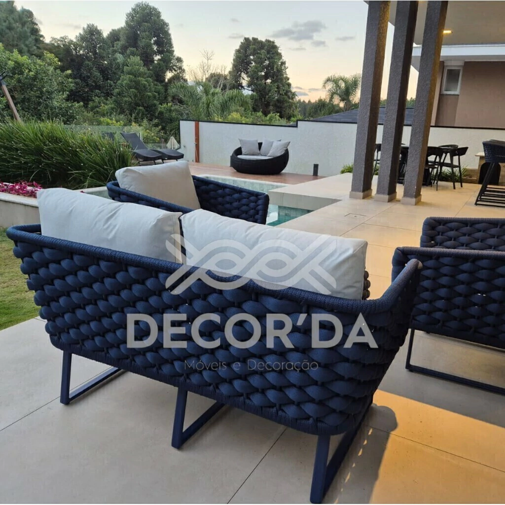 Feito com estrutura resistente e revestido em tricô náutico de trama trabalhada, o Dubai combina ventilação, suavidade ao toque e resistência contra sol e chuva. O material destaca-se por sua estética artesanal e por suportar bem o uso externo.