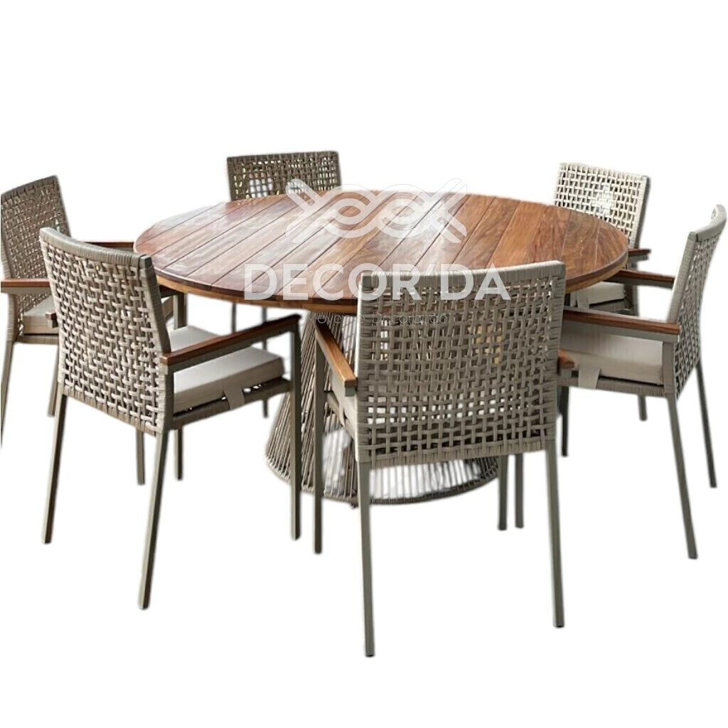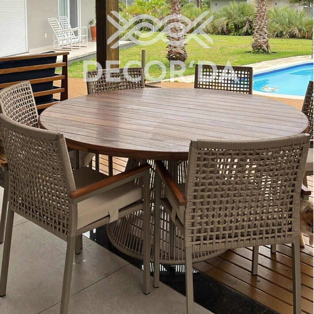 Dê um upgrade no seu espaço externo com o Conjunto Mesa Mauá + Cadeira Porto, uma combinação que une o calor da madeira Cumaru com a leveza e estilo da corda náutica, ideal para varandas gourmet e jardins sofisticados.