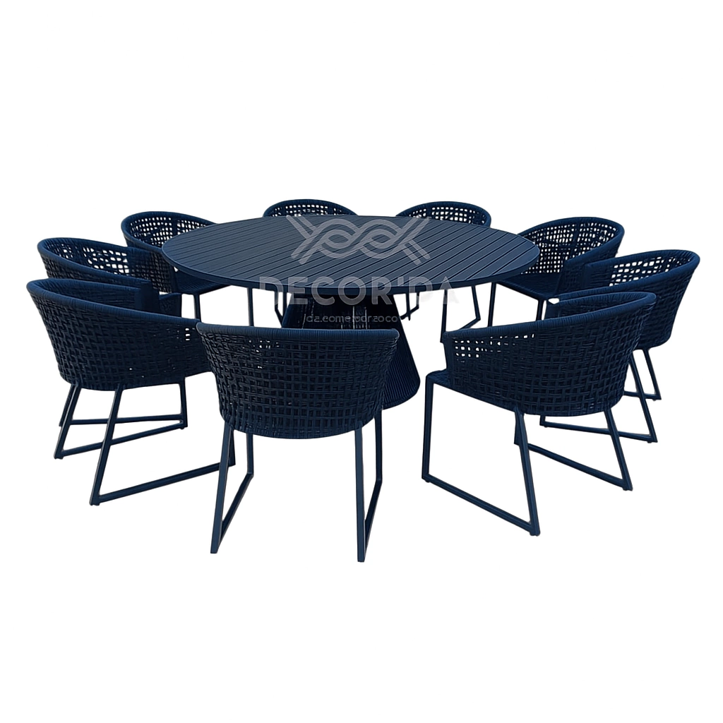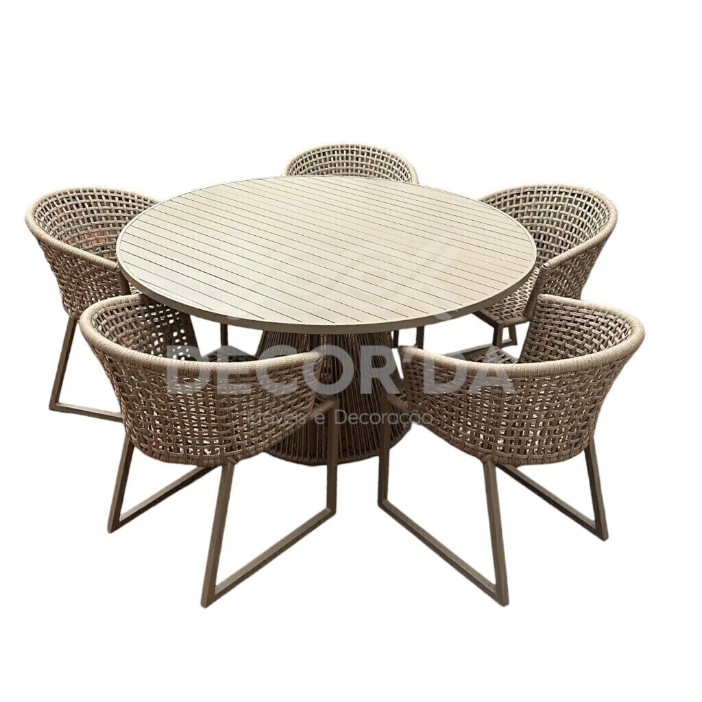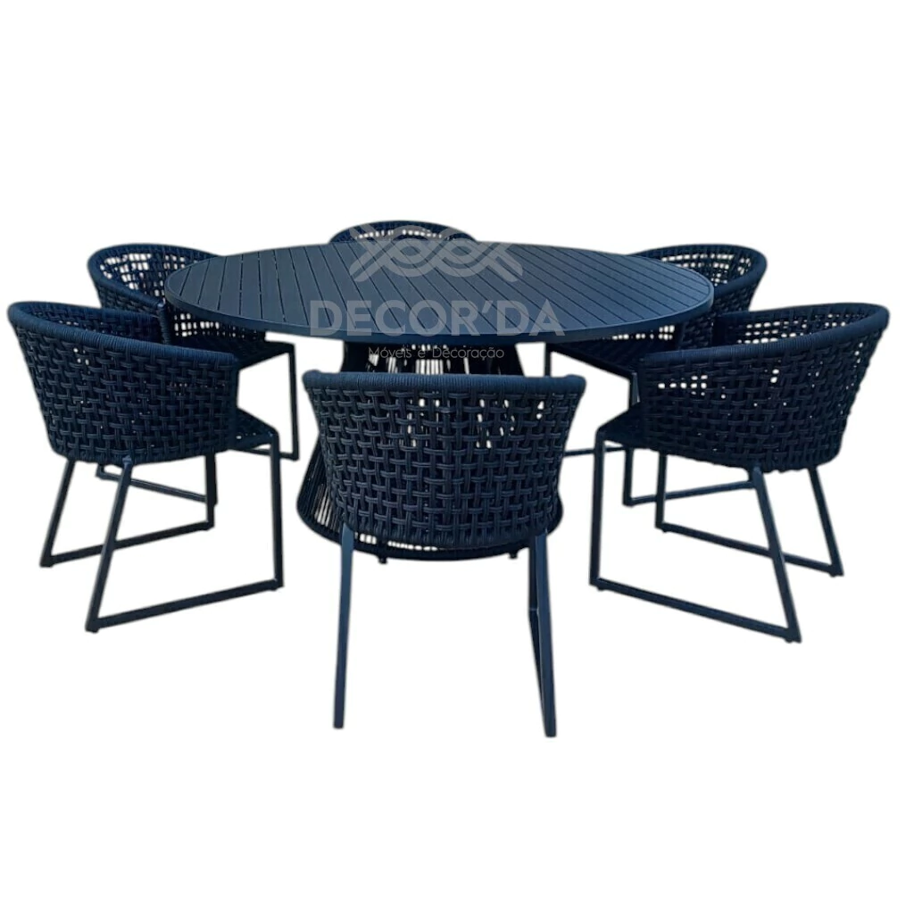 Já as cadeiras Jade, com trançado em corda náutica dupla, combinam ergonomia, leveza e conforto