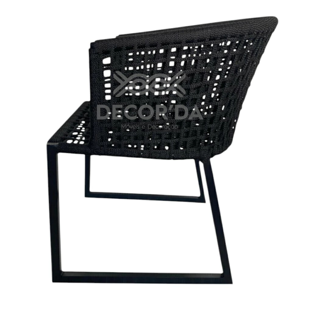 As cadeiras Jade, com trançado duplo em corda náutica, oferecem ergonomia, leveza e conforto para longas refeições ao ar livre.