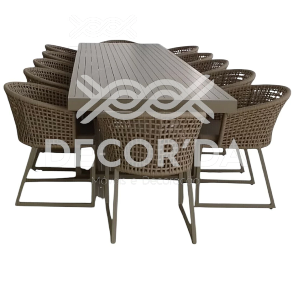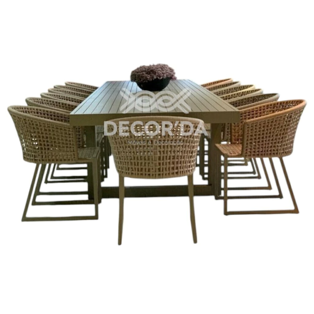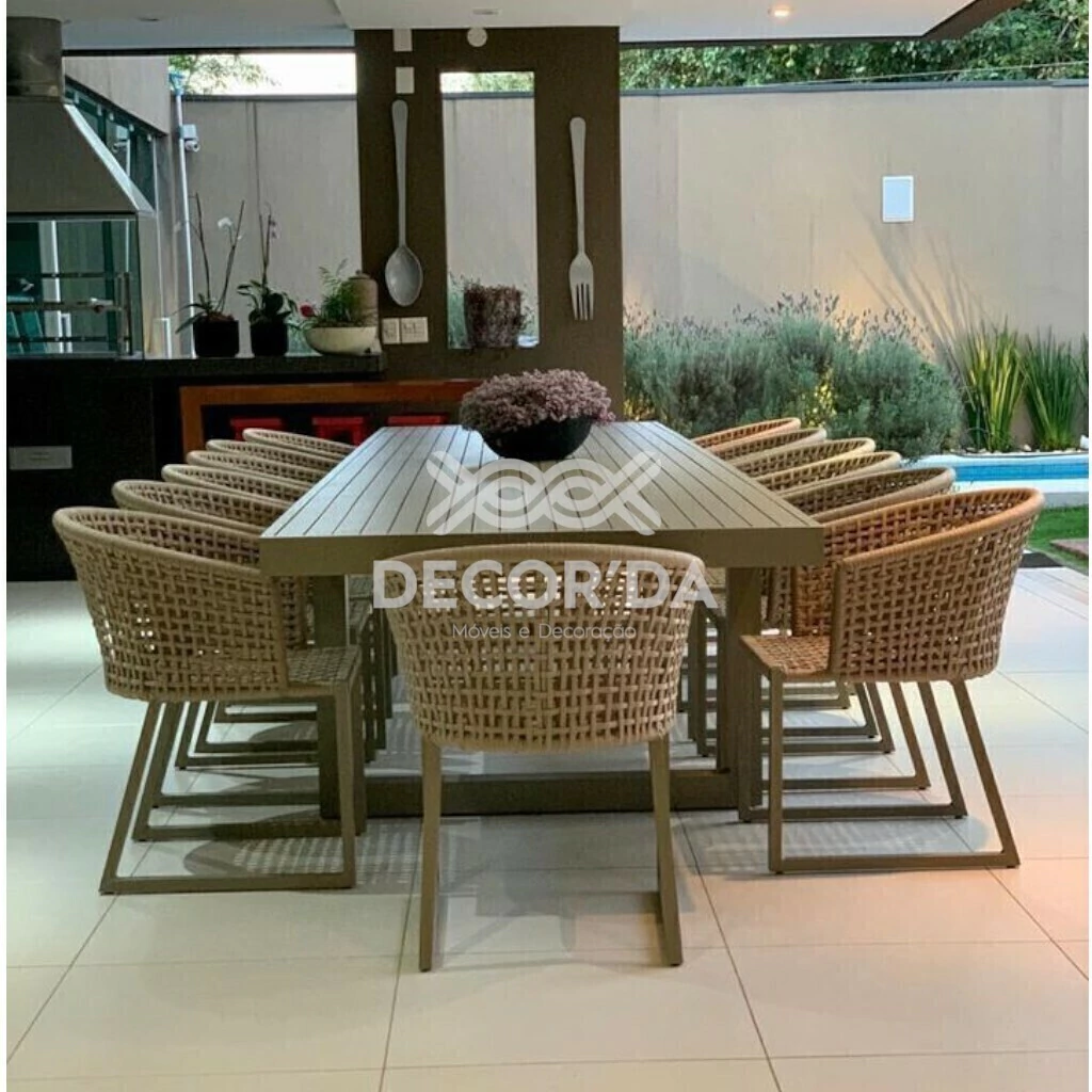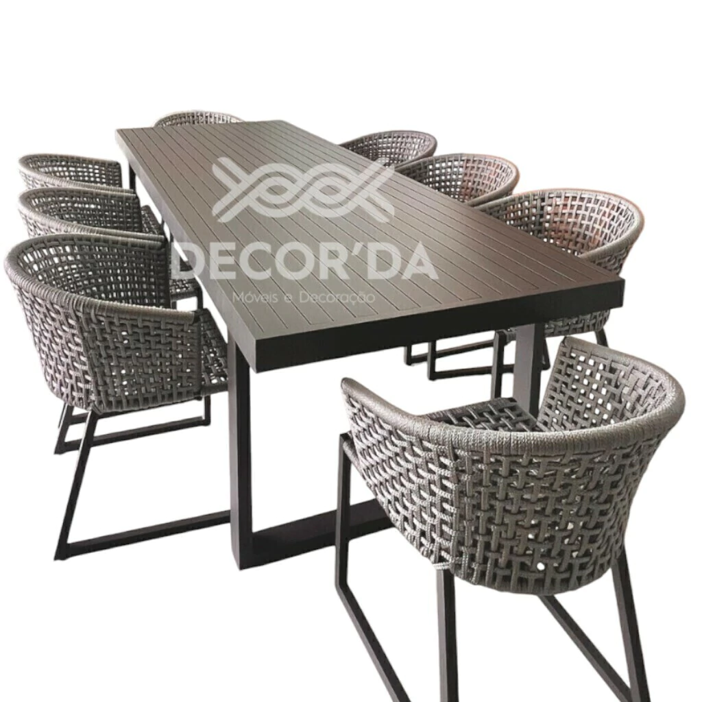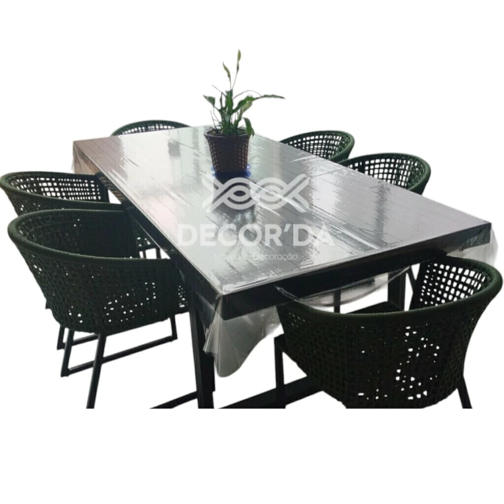 O trançado em corda náutica nas cadeiras adiciona charme artesanal e durabilidade superior — ideal para varandas, jardins e áreas externas ou gourmet.