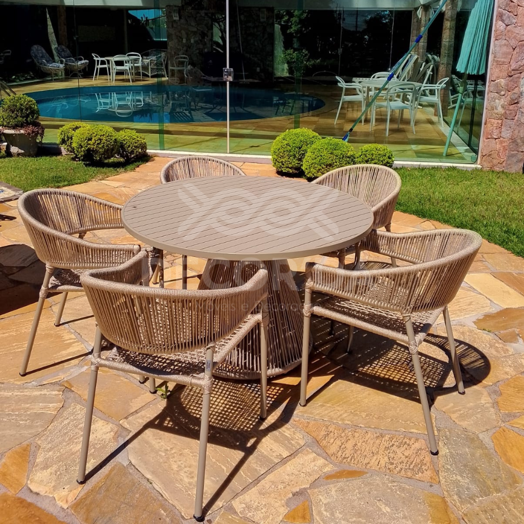 A estrutura em alumínio possui acabamento eletrostático, garantindo proteção contra intempéries, ferrugem e desgaste. As cadeiras Liz trazem conforto, leveza e facilidade de limpeza, enquanto a mesa Mauá agrega presença com seu design robusto. Tudo isso com opções de personalização em cores da pintura, corda náutica e tecido para harmonizar com o seu ambiente. (1).png)