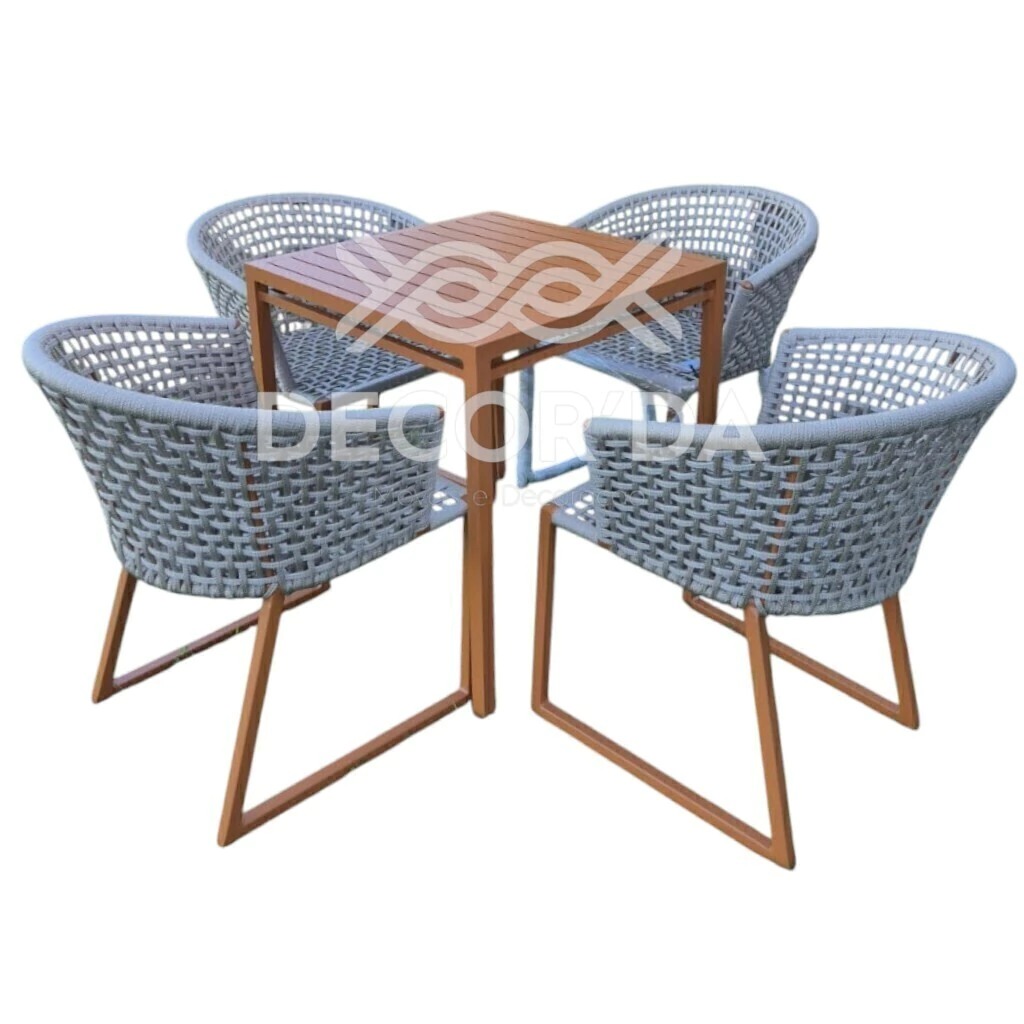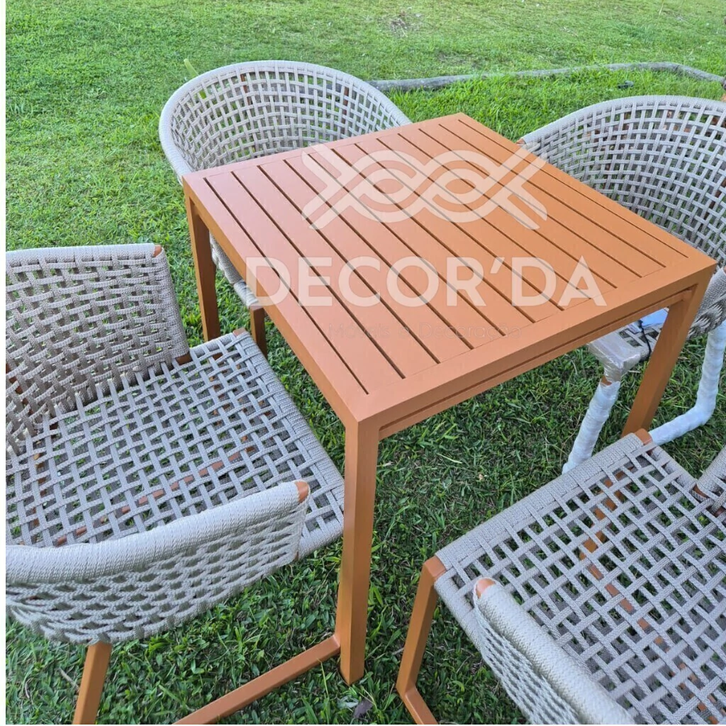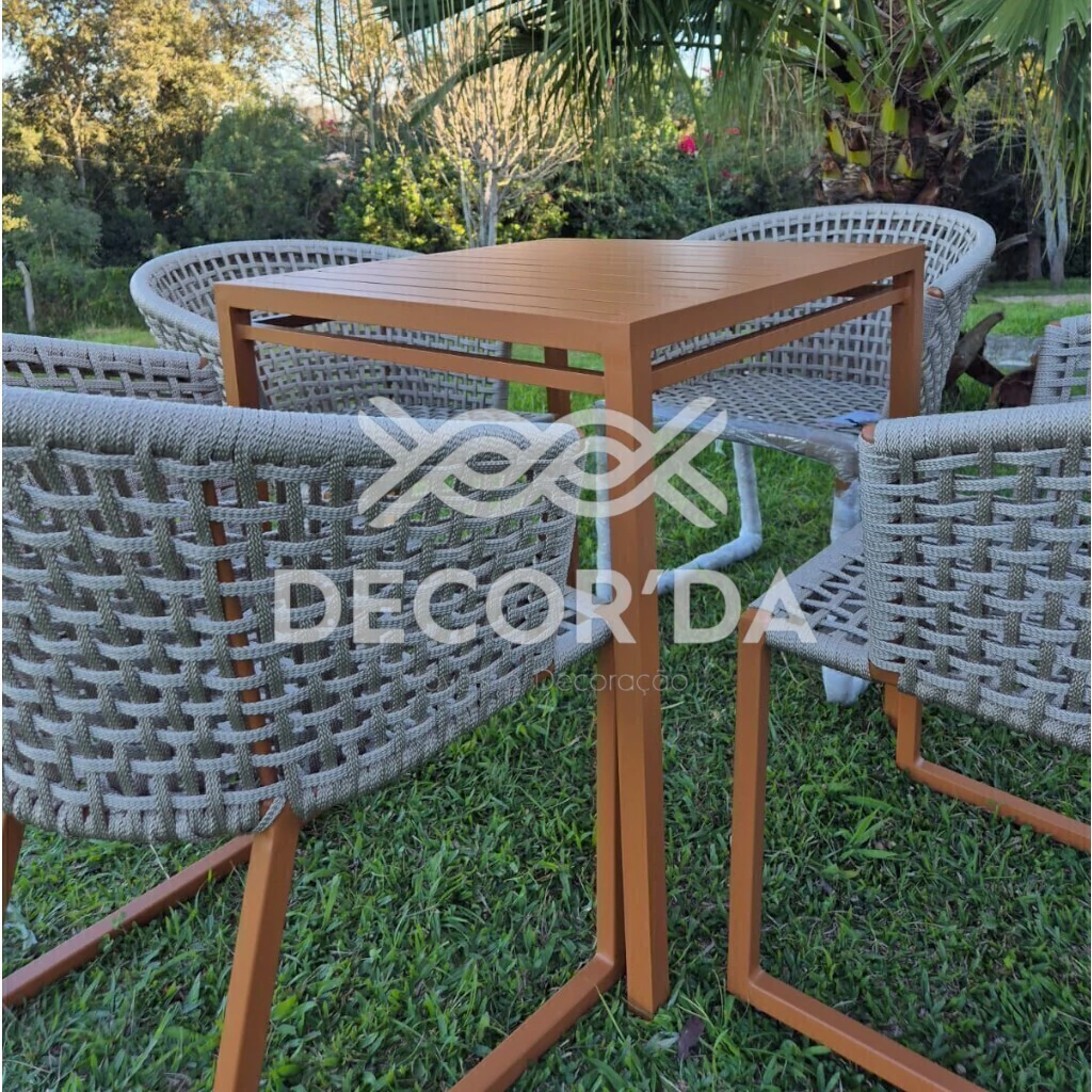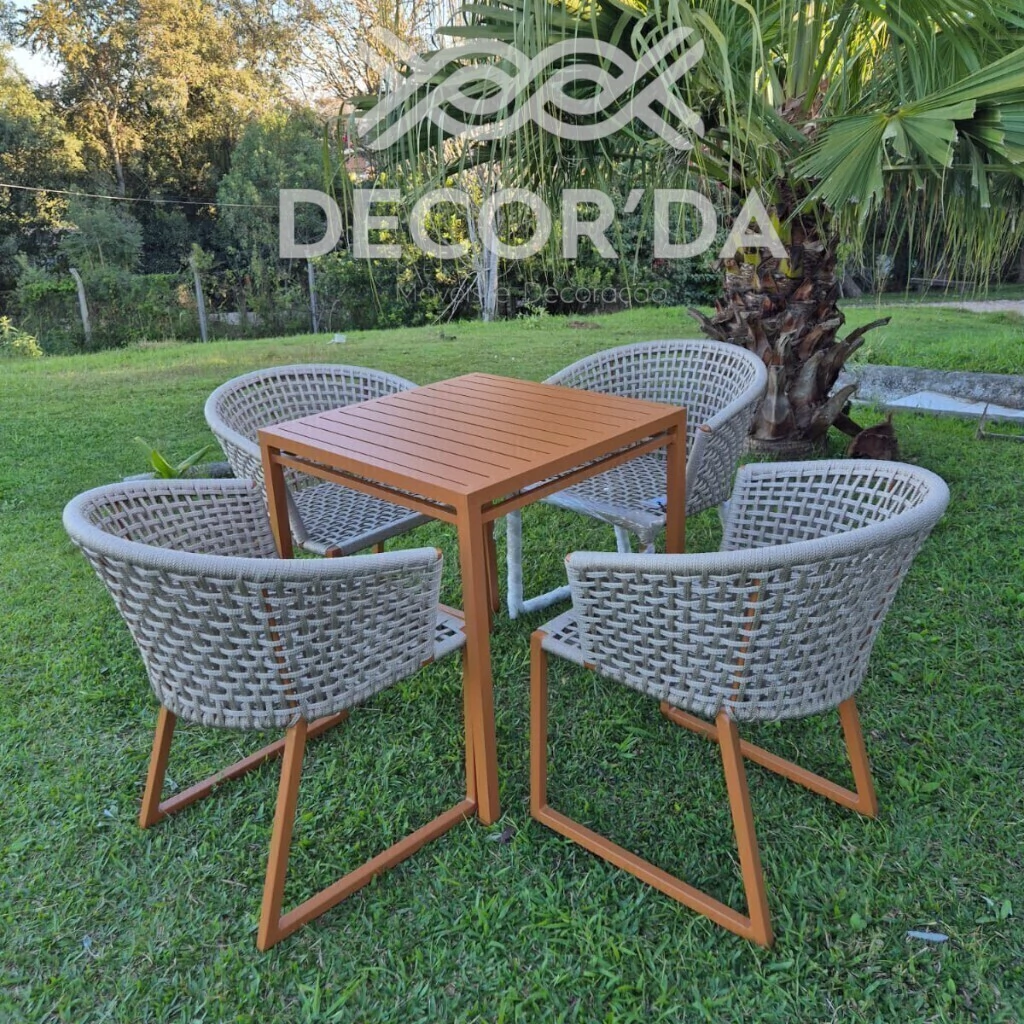 Garanta já o Conjunto Mesa Romana + Cadeiras Jade em Alumínio e Corda Náutica, produzido sob demanda pela Decorda Móveis.