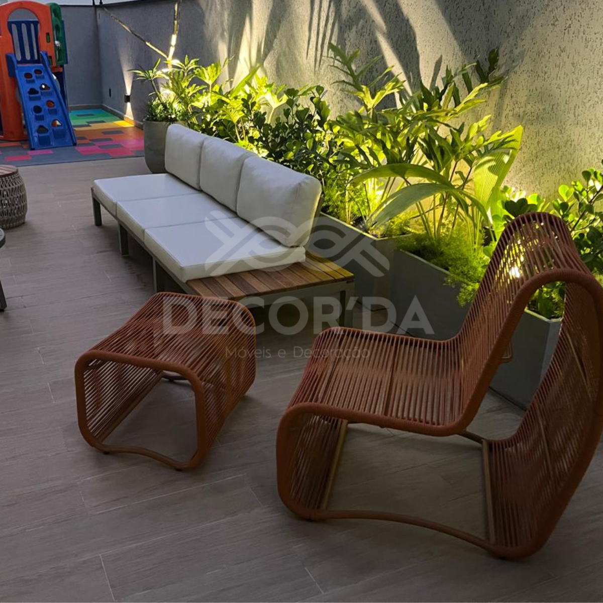 O Conjunto Poltrona Londres com puff foi criado para transformar sua varanda ou jardim em um espaço de puro