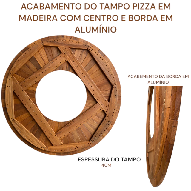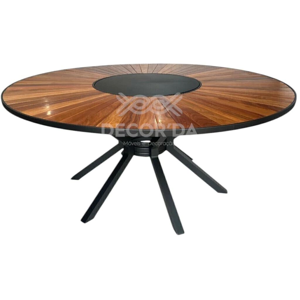 O tampo estilo “pizza” com centro giratório facilita a interação à mesa e traz charme e praticidade às refeições em família ou entre amigos.