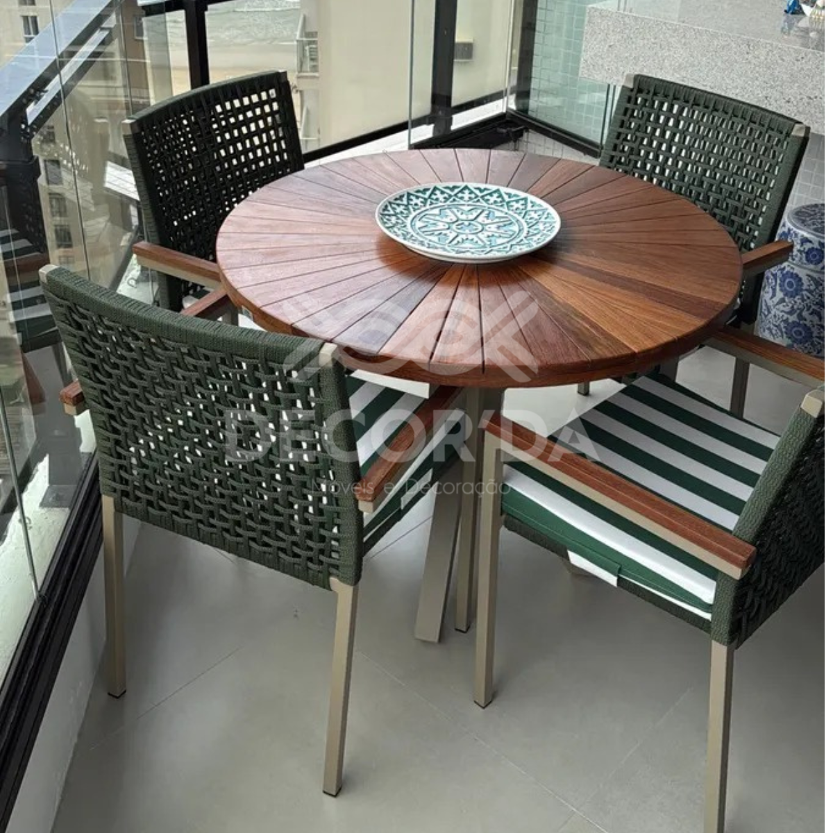 Apresente um novo padrão de sofisticação ao seu espaço com a Mesa Estrela Pizza em Cumaru com Base em Alumínio, uma peça premium que combina a beleza natural da madeira Cumaru com a robustez e leveza do alumínio — perfeita para varandas gourmet, jardins e áreas externas cobertas