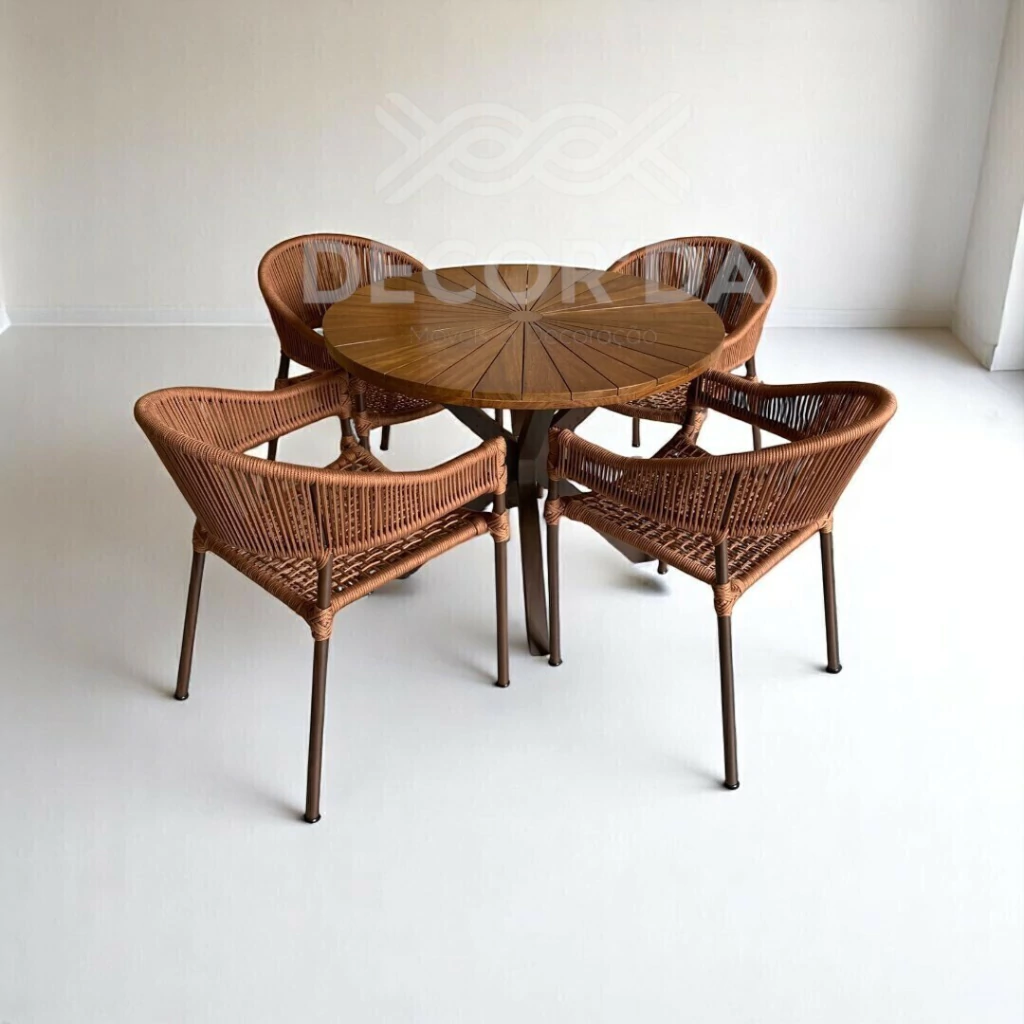 Adicione elegância e sofisticação ao seu ambiente com a Mesa Redonda Estrela. Seu design exclusivo em formato de estrela na base proporciona charme e estabilidade, sendo perfeita para áreas gourmet, varandas e ambientes internos ou externos cobertos.