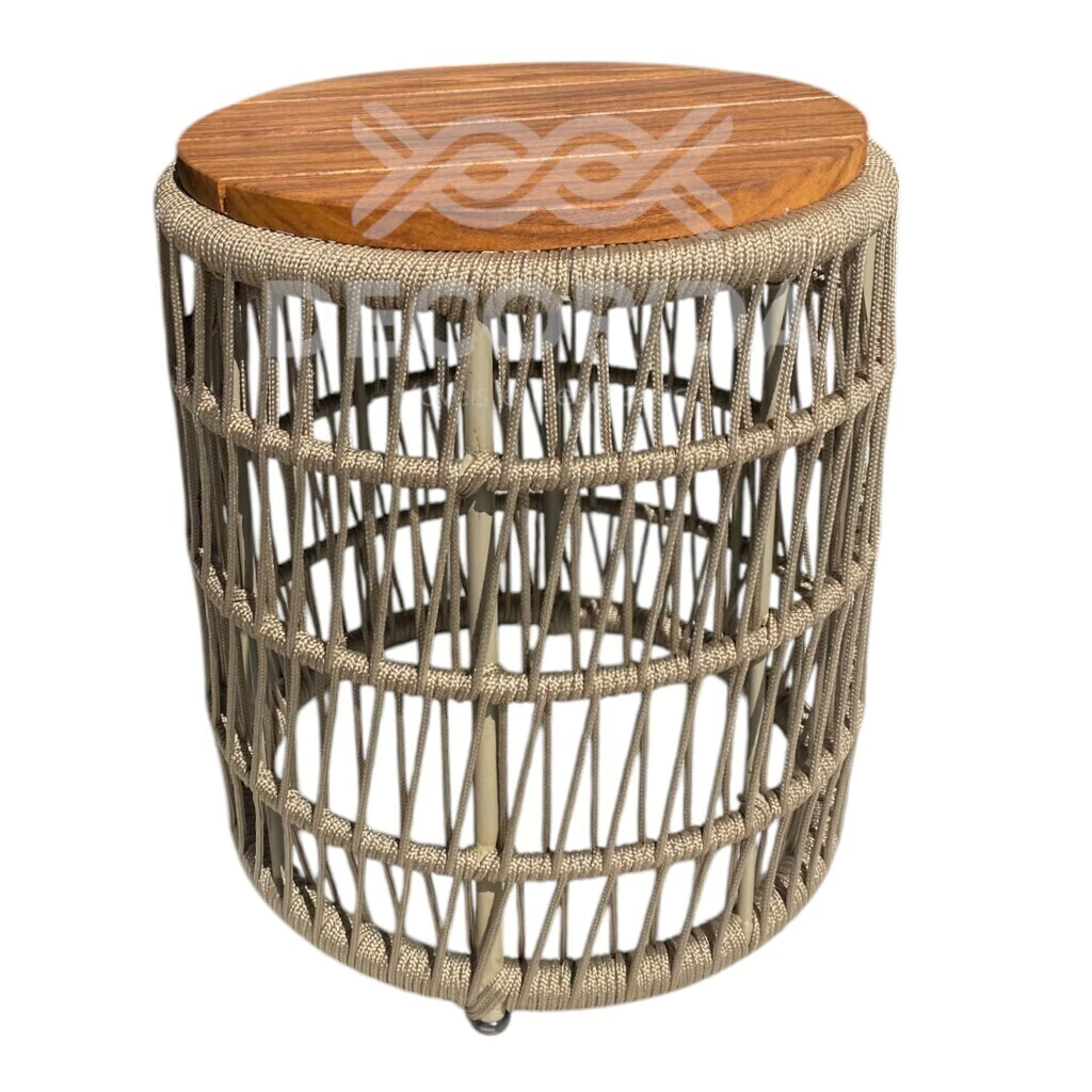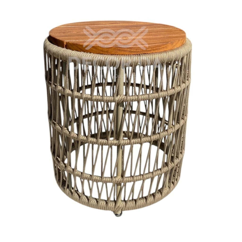 Adquira agora a sua Mesa Lateral Dália em Alumínio, Corda Náutica e Cumaru, produzida sob medida pela Decorda Móveis.
