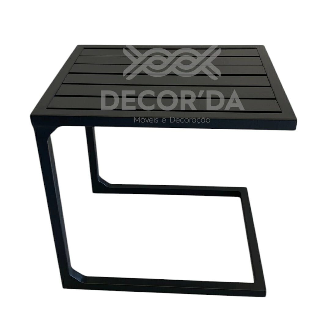 A Mesa Lateral Liz é uma peça que combina design clean e sofisticação em alumínio ripado.