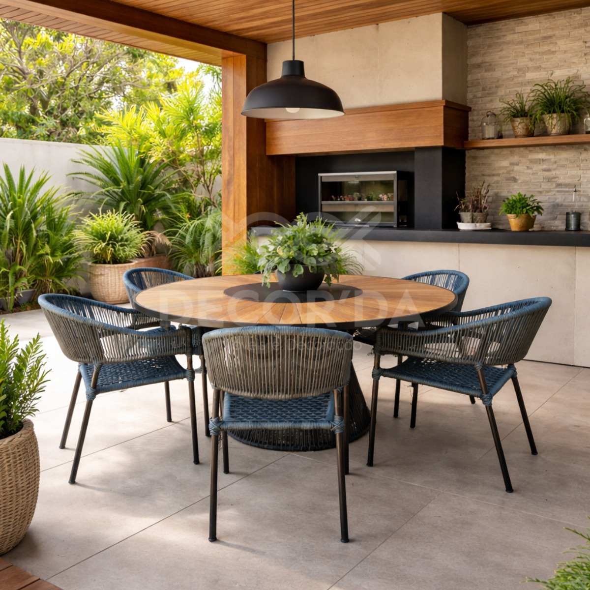 Ideal para varandas, áreas gourmet, jardins e espaços de convivência, este conjunto une materiais nobres, acabamento artesanal e um design contemporâneo que valoriza qualquer projeto arquitetônico.
