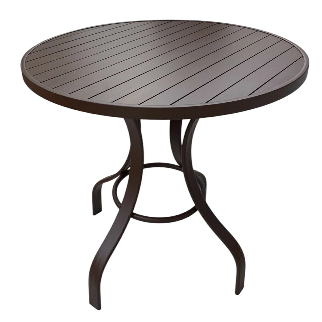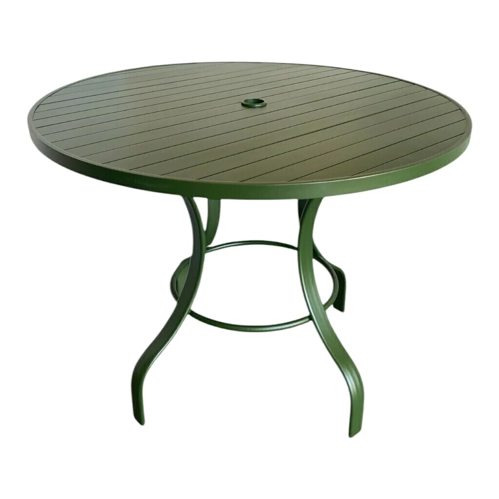 A estrutura em alumínio com pintura eletrostática garante alta durabilidade e resistência às intempéries. O tampo ripado de alumínio proporciona ventilação, secagem rápida e fácil manutenção sendo ideal para ambientes ao ar livre com uso frequente.