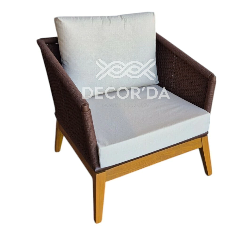 Com estrutura em alumínio leve e resistente, tramado à mão em corda náutica, pés de madeira Cumaru e almofadas em tecido impermeável, esta poltrona oferece alta durabilidade contra sol, chuva e uso externo frequente. A espuma para área externa possui base com tela sling para facilitar o escoamento de água..jpg)