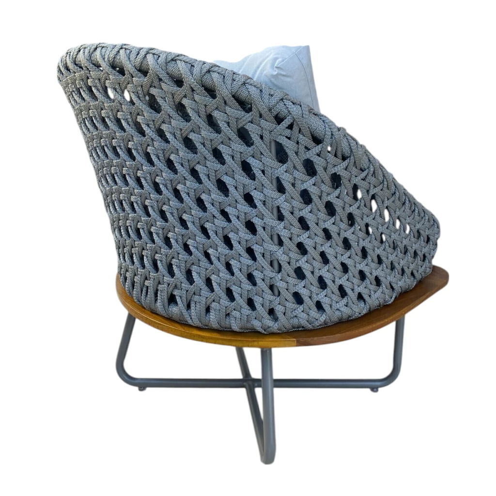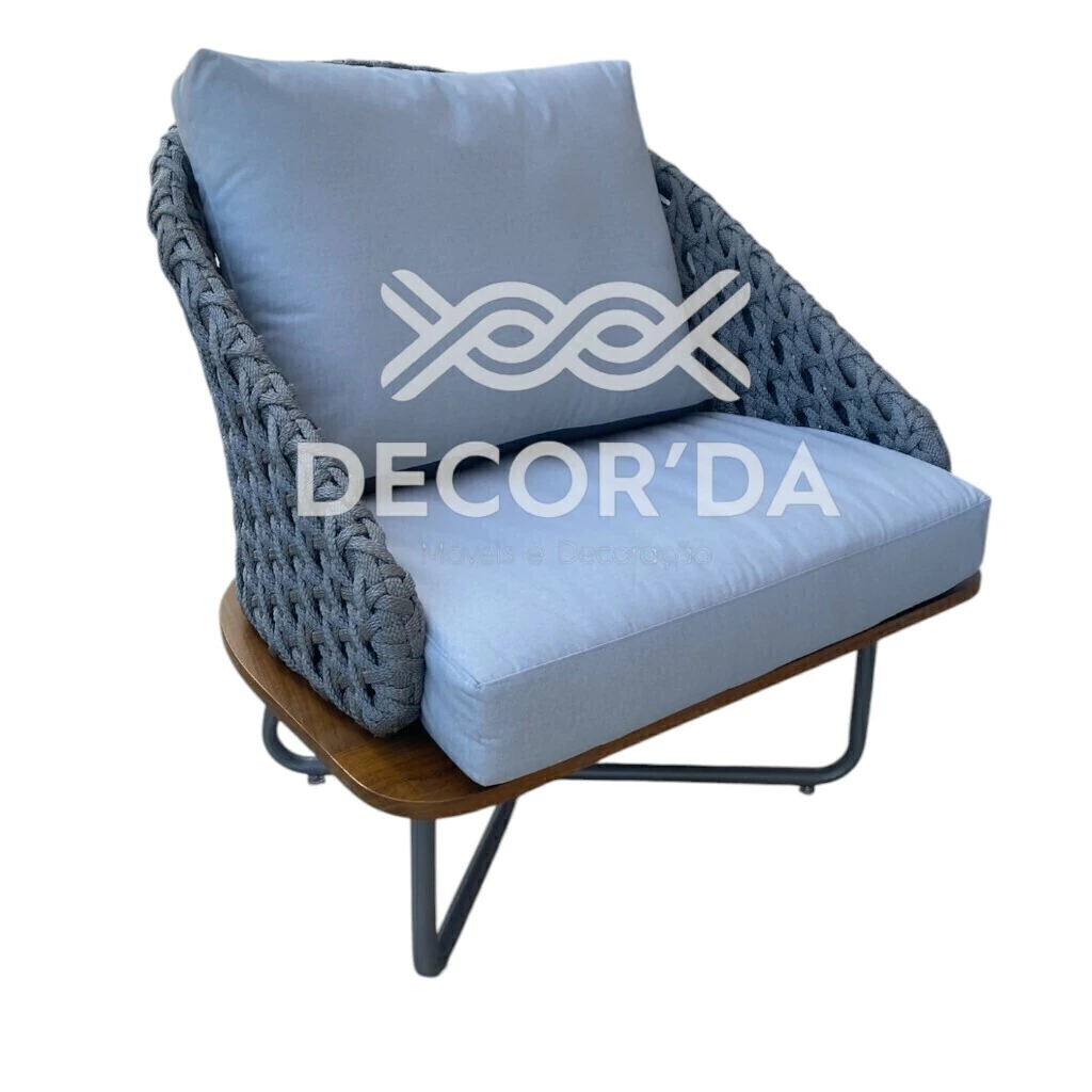 Garanta agora a Poltrona Veneza em Alumínio, Corda Náutica e Cumaru, feita sob demanda pela Decorda Móveis.