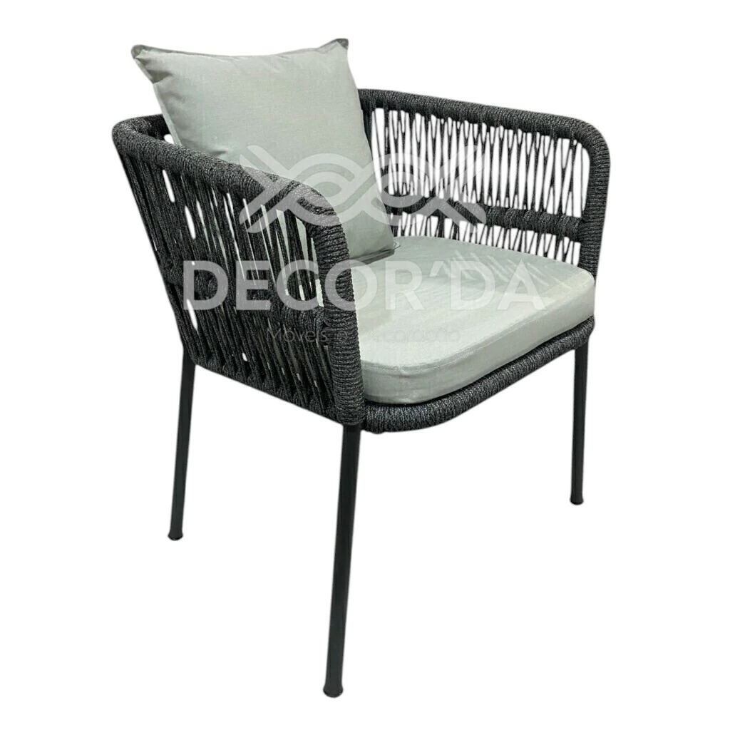Com estrutura em alumínio de alta resistência e revestimento em corda náutica trançada artesanalmente, esta cadeira garante durabilidade contra sol, chuva e maresia. Acompanha almofada macia e confortável, que proporciona uma experiência única de bem-estar em varandas, jardins ou áreas gourmet.