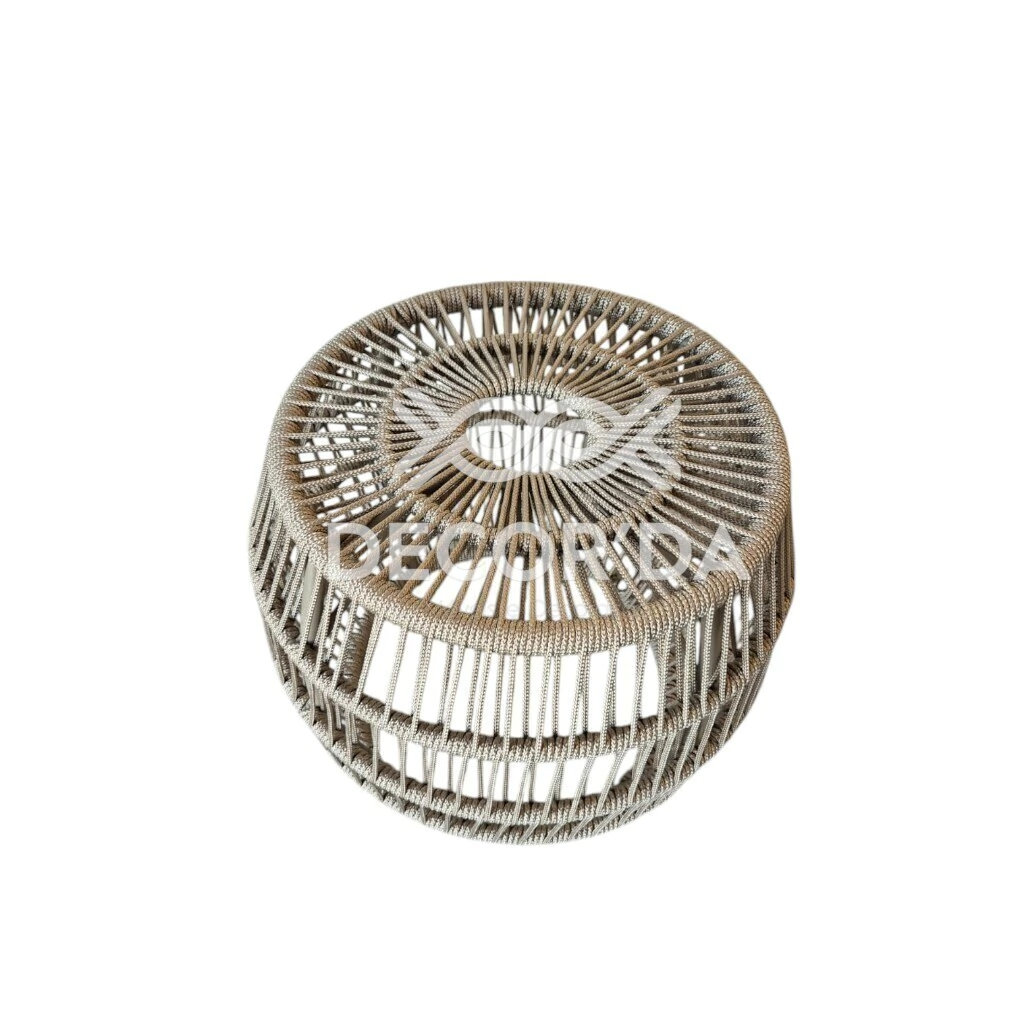 Construído com estrutura em alumínio com pintura eletrostática e revestimento artesanal em corda náutica, esse puff é leve, durável e visualmente leve.