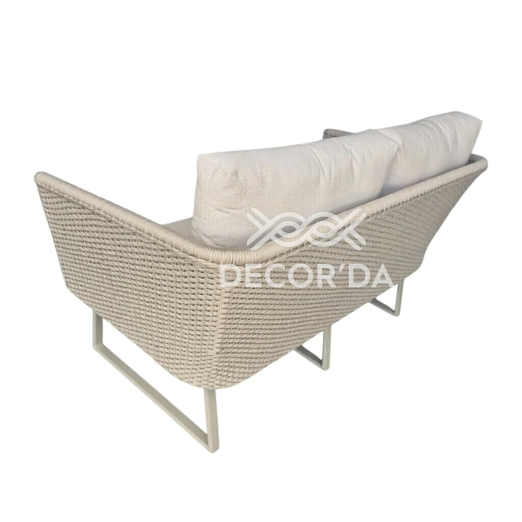 O Sofá Roma proporciona momentos únicos de relaxamento e convivência. Além disso, você pode personalizar as cores do alumínio e da corda, criando uma peça exclusiva que harmoniza perfeitamente com seu espaço.